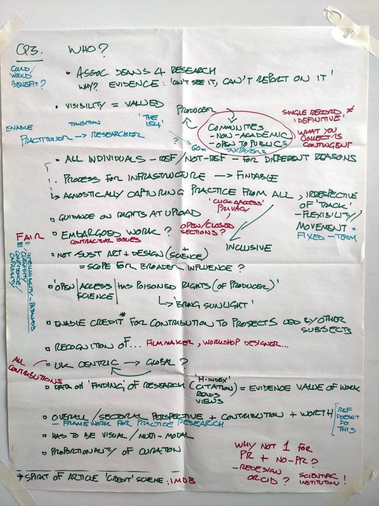 The symposium went on to host an afternoon workshop, in which delegates were facilitated in groups for a round table activity to respond to three key questions for the Practice Research community: